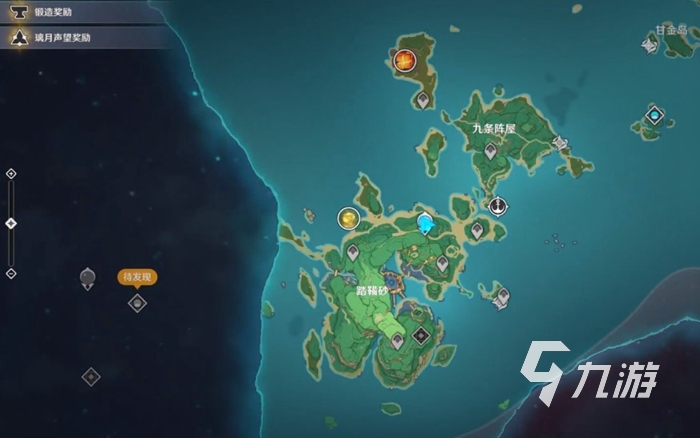 我们的冒险等阶在达到15级左右,就可以前往璃月港,然后往东边游。游过去可以发现到稻妻地图的边界,是一块没有制作完成的草地。在这里有一个小坡,我们从小坡上滑下去,如果出现了加载界面并且界面中出现的是稻妻的logo(就是神社的标志)就说明进入成功了。在加载之后我们会自动来到离岛的这个位置,如果没有成功大家可以多尝试几次。