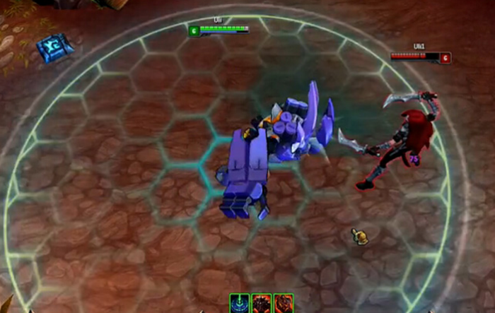 三技能是一个格挡技能,能使用盾牌抵挡1.5秒除了防御塔外的所有伤害,在抵挡完成之后,还会对盾牌前方的造成猛击,强化之后使用技能还会短暂提升自己的移动速度。最后的大招是支援队友的主要手段,有着非常大的技能范围。在选定范围之后,先会投掷出自己的武器,然后想投掷武器的地点飞行,落地之后命中的敌人会受到减速影响并且造成一定伤害。