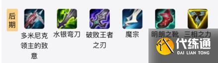 出装分析:魔宗、三相之力作为EZ的核心装备,可以在前期出来,拥有三件套就有了一定的战斗能力;中期补充破败王者、水印弯刀,基本成型,可以打出高额的伤害,最后多米尼克领主的致意可以拥有更强的削坦克的能力。