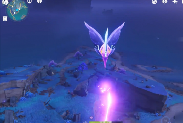 2、来到一个小山坡后,触碰「灵光」,然后启动小道具「斯露莎」,靠近「浮光球」短按E