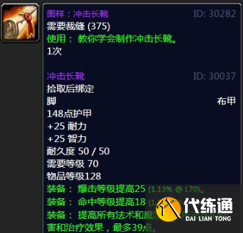 冲击长靴:图纸同样掉落于t5副本,高暴击高命中而且三维属性极佳,在前期属于法系的极品鞋子了,分身觉得这鞋子相当不错,值得推荐。