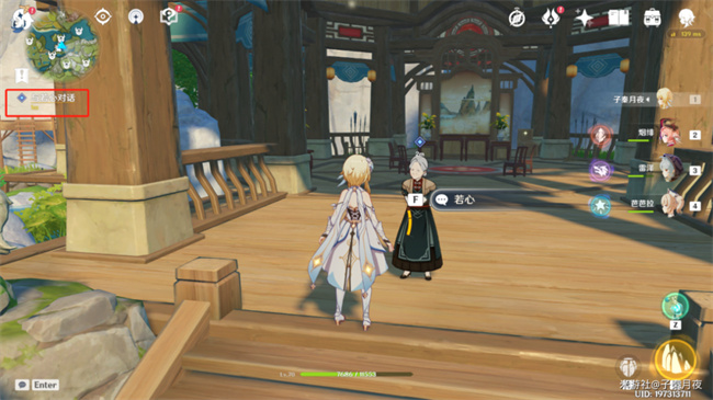 通过传送锚点直接来到轻策庄附近,找到村长若心,询问小六的位置,才发现小六竟然独自出门前往璃月港找父亲嘉义了。
