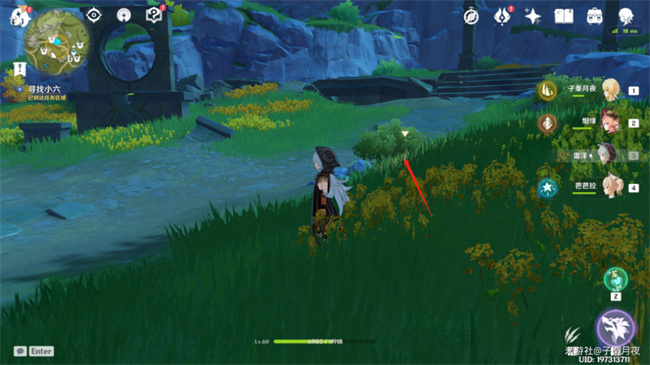 然后就是找小六对话了,小六就躲在这个草堆里面,是不是很不好找。