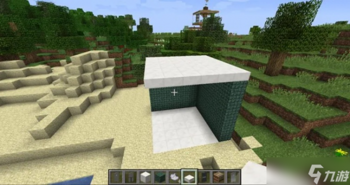 在史莱姆块后方中央放置粘性活塞,活塞后添加一个普通方块。