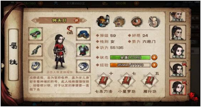 钟无月(25.22):最后出现两个选项,玩家选择用自己的身体给钟无月取暖,醒来后(25.22)找钟无月,钟无月加入队伍,即可得到钟无月。钟无月加入队伍,获得3点声望和3000阅历。